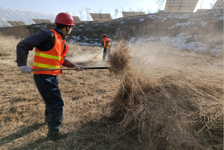 為進一步保障電站安全運營環境,從源頭消除火災隱患,11月1日—12月28日,臨洮電站開展了為期五十八天的光伏區雜草治理工作,全面清除光伏區周邊雜草一百二十余萬平方米、修剪樹木千余棵。