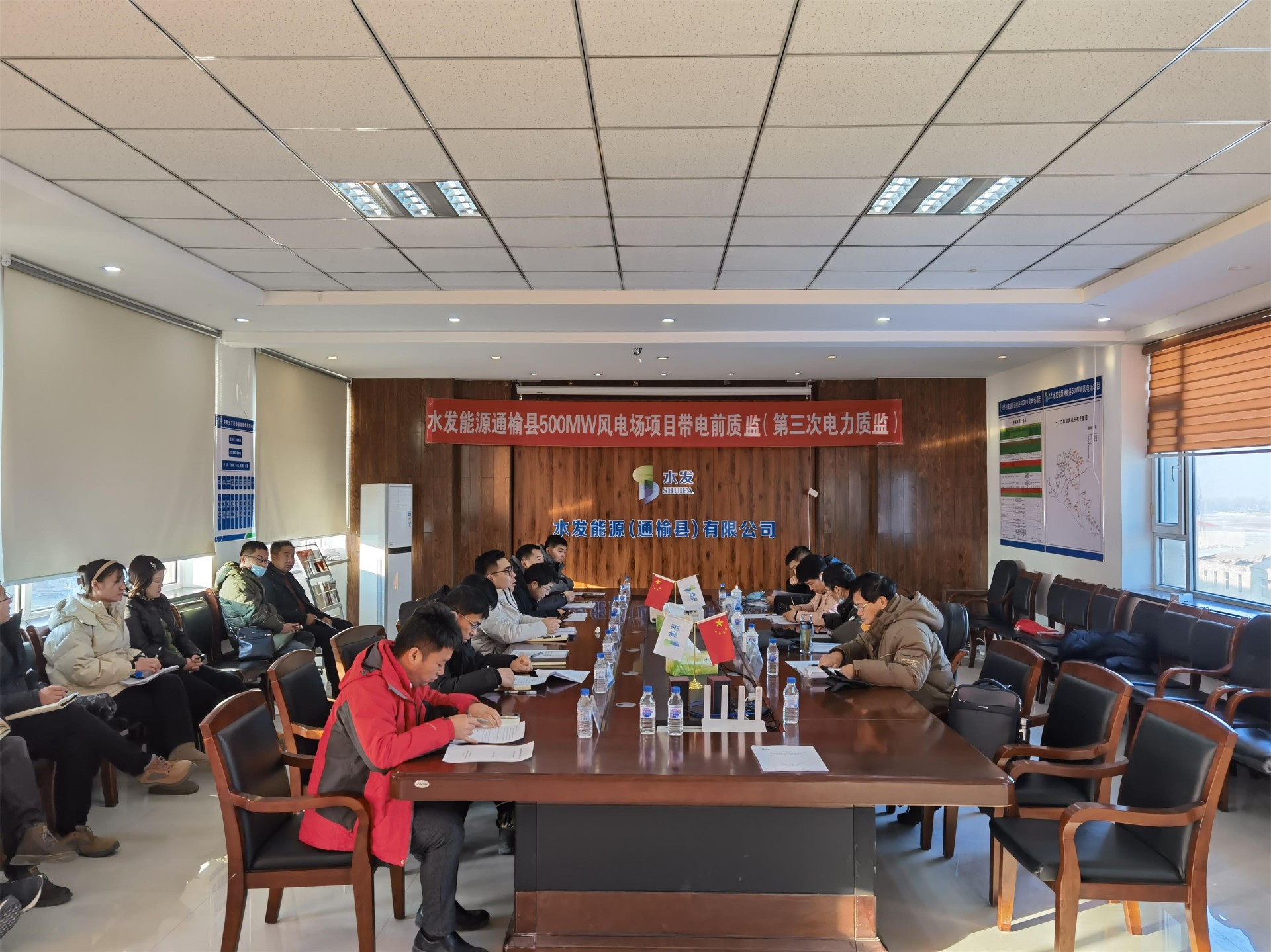 12月23日,可再生能源發(fā)電工程質(zhì)量監(jiān)督站專家組蒞臨水發(fā)能源通榆縣500MW風(fēng)電場項(xiàng)目,開展升壓站受電暨首批風(fēng)電機(jī)組啟動(dòng)試運(yùn)前質(zhì)量監(jiān)督檢查工作。水發(fā)能源通榆公司、設(shè)計(jì)單位、監(jiān)理單位、總包單位及各施工單位積極配合檢查。